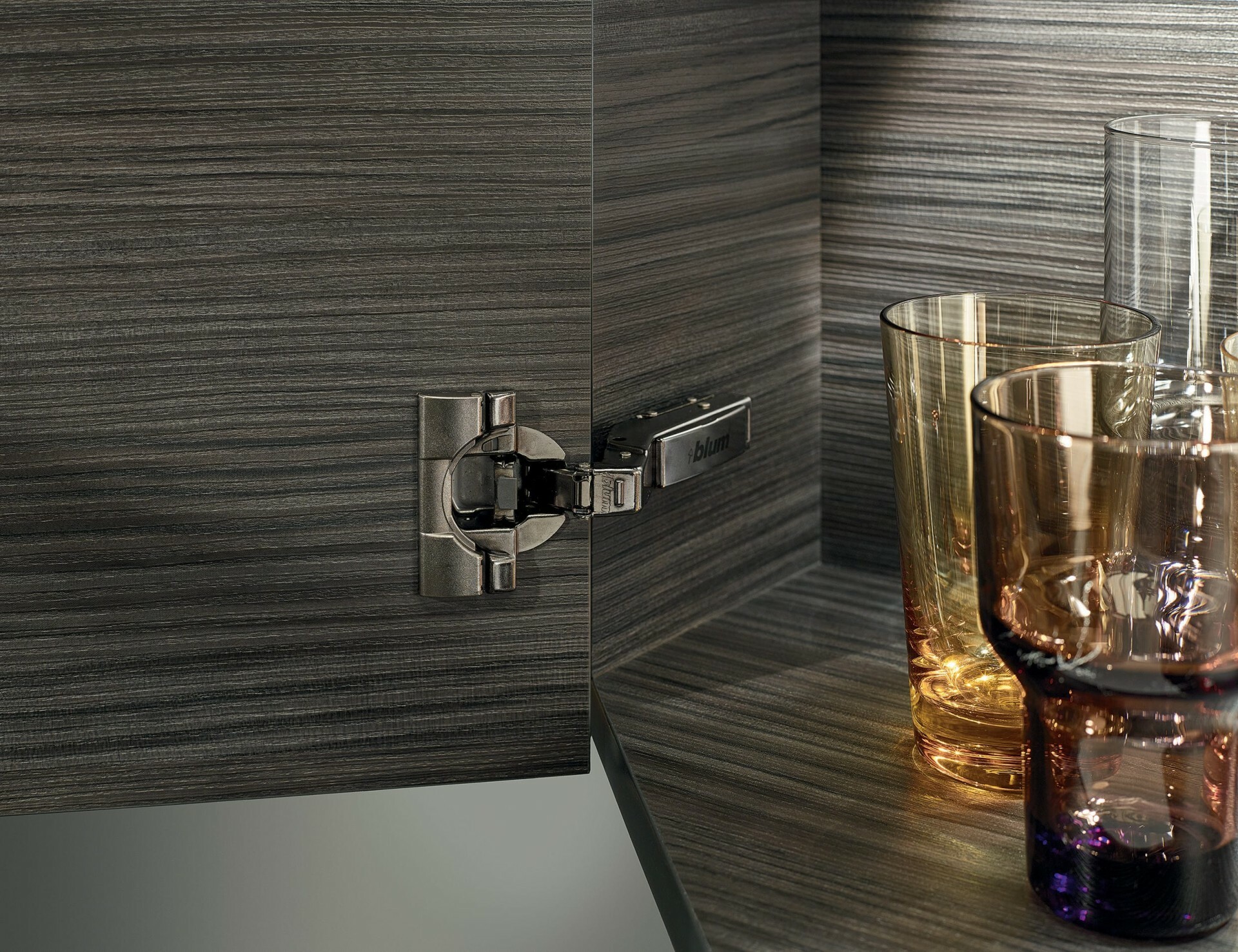 * CLIP top BLUMOTION 95°瑪瑙黑特殊角鉸鏈可與深色家具時尚融合。