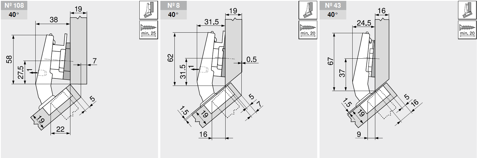 *特別角"正角45°"最大覆蓋的鉸鏈可適用於斜切應用的45°櫃體。