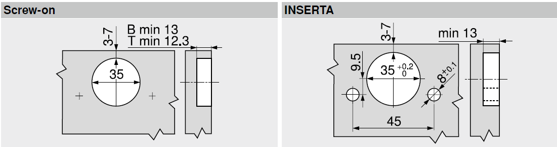- INSERTA按入脹緊技術,免工具將鉸鏈安裝於櫃門。