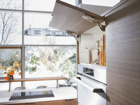 輕型上掀門可讓你盡情利用可用的儲存空間,例如雪櫃或食物櫃頂。小巧的省力裝置能夠輕鬆裝入小型的櫃體內,易用度和用家方便程度俱佳。