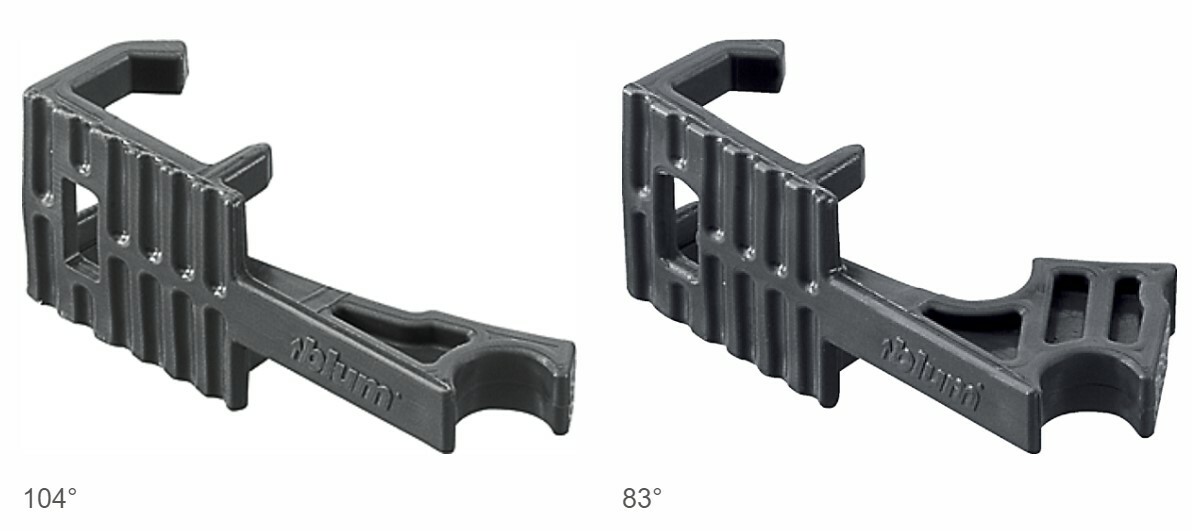 104° 及 83° 角度限制器,確保櫃頂只需預留少量空間。