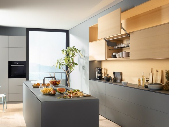 闊大的櫃門與幼細的罅隙,融合成流麗的一體化外觀。AVENTOS 讓你將優美設計,由吊櫃一直延伸至地櫃。