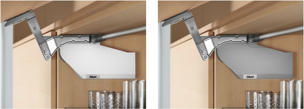 讓小型櫃門向上揭起,與櫃體保持平行,是中身及高身吊櫃頂部加設櫃體時的理想方案。櫃門能夠向上及向外揭起,讓你在煮食時也能讓櫃門保持開啟。