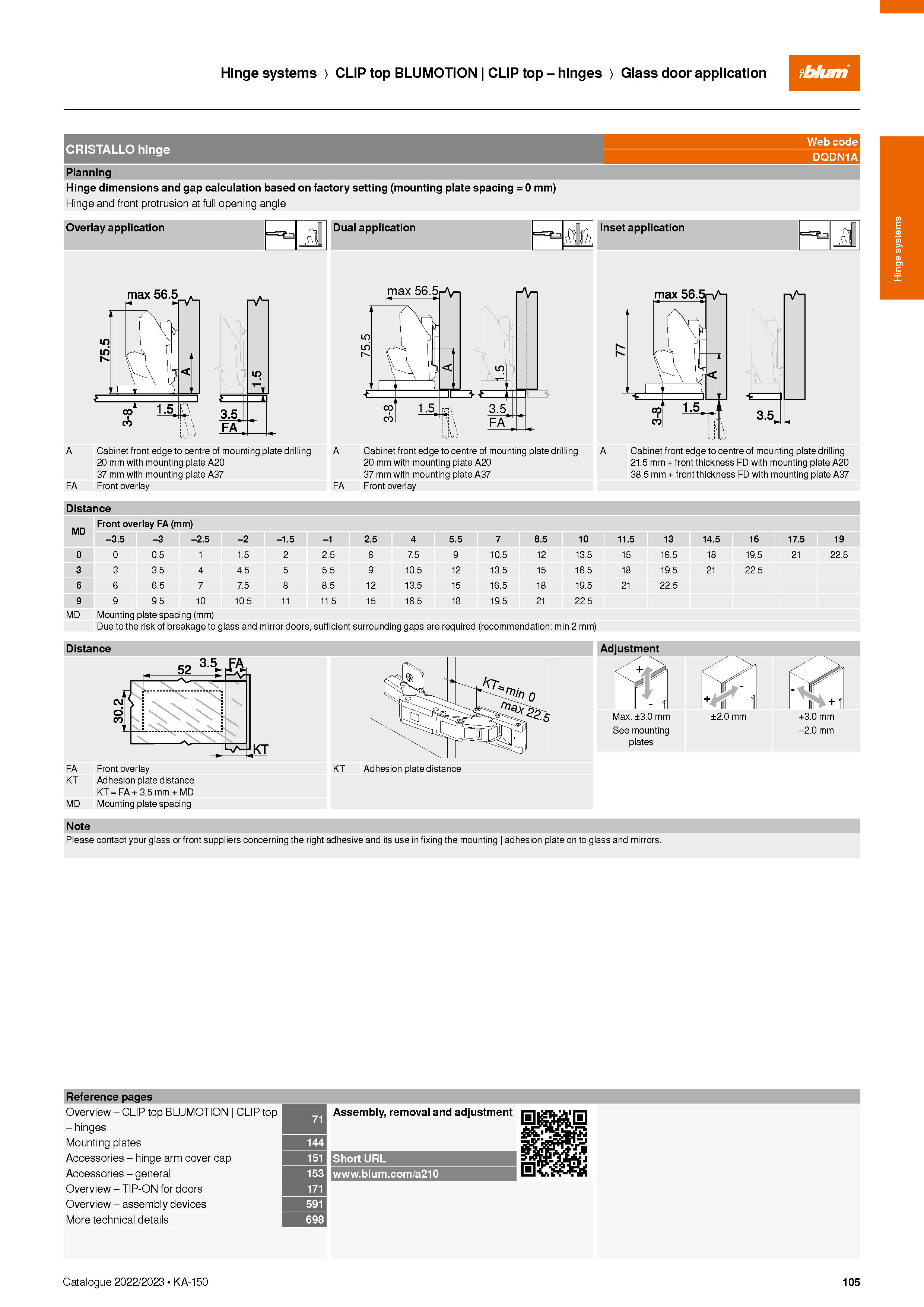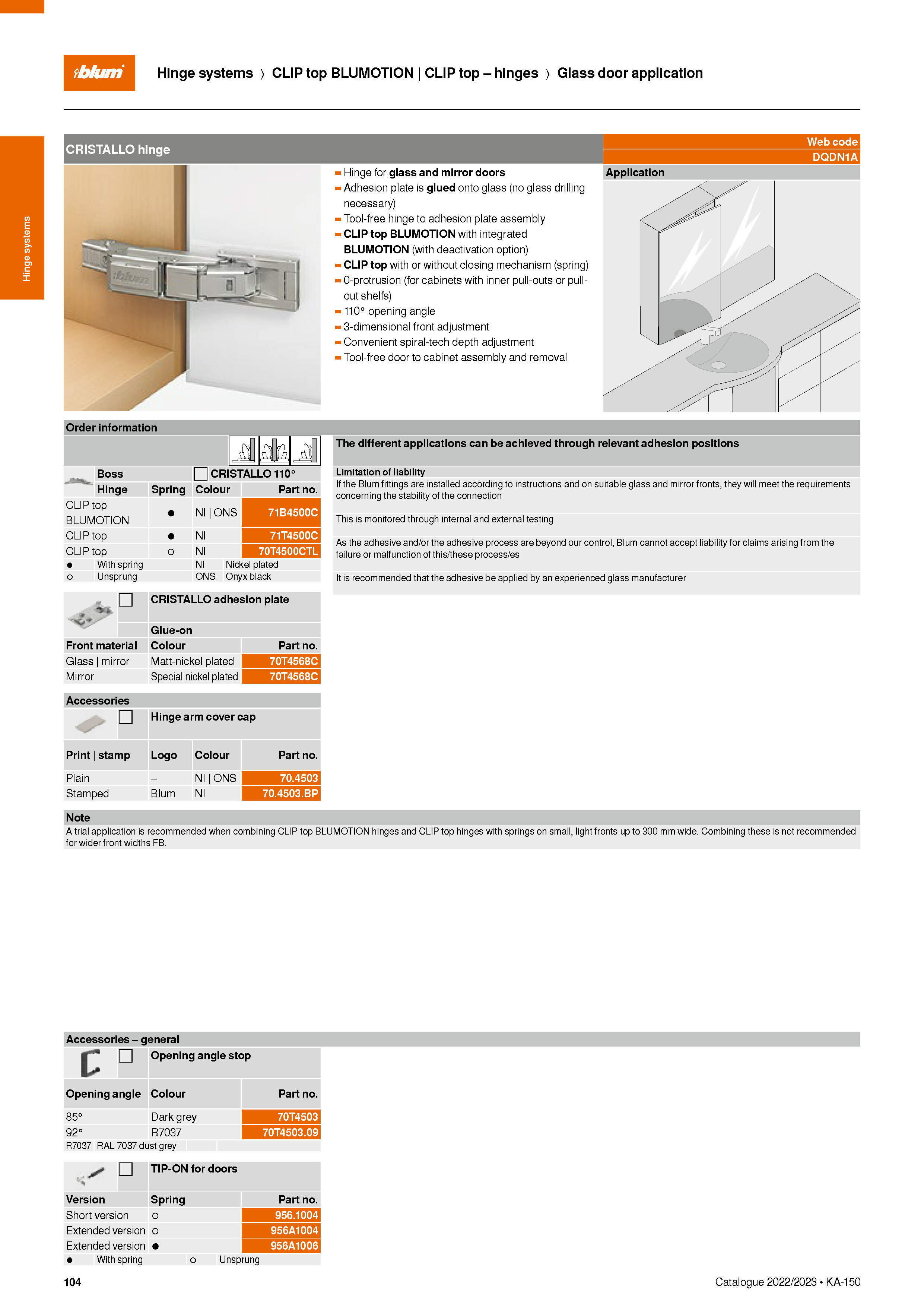 CLIP top BLUMOTION 玻璃鉸鍊 (適用於玻璃展示櫃的 CRISTALLO 門鉸)