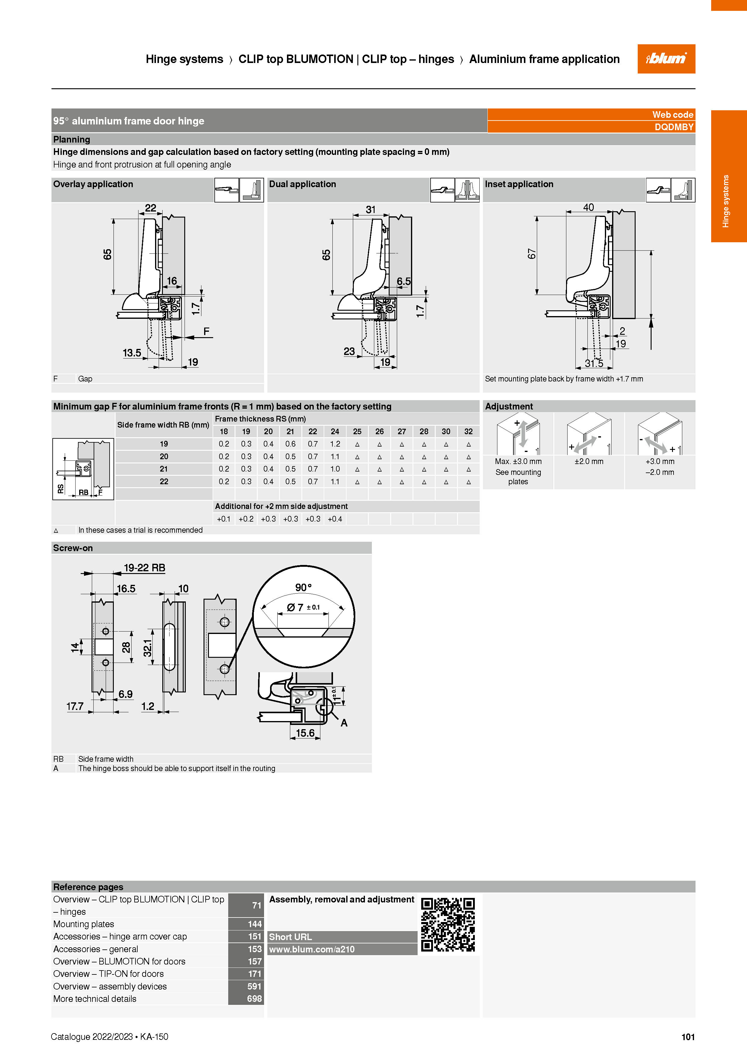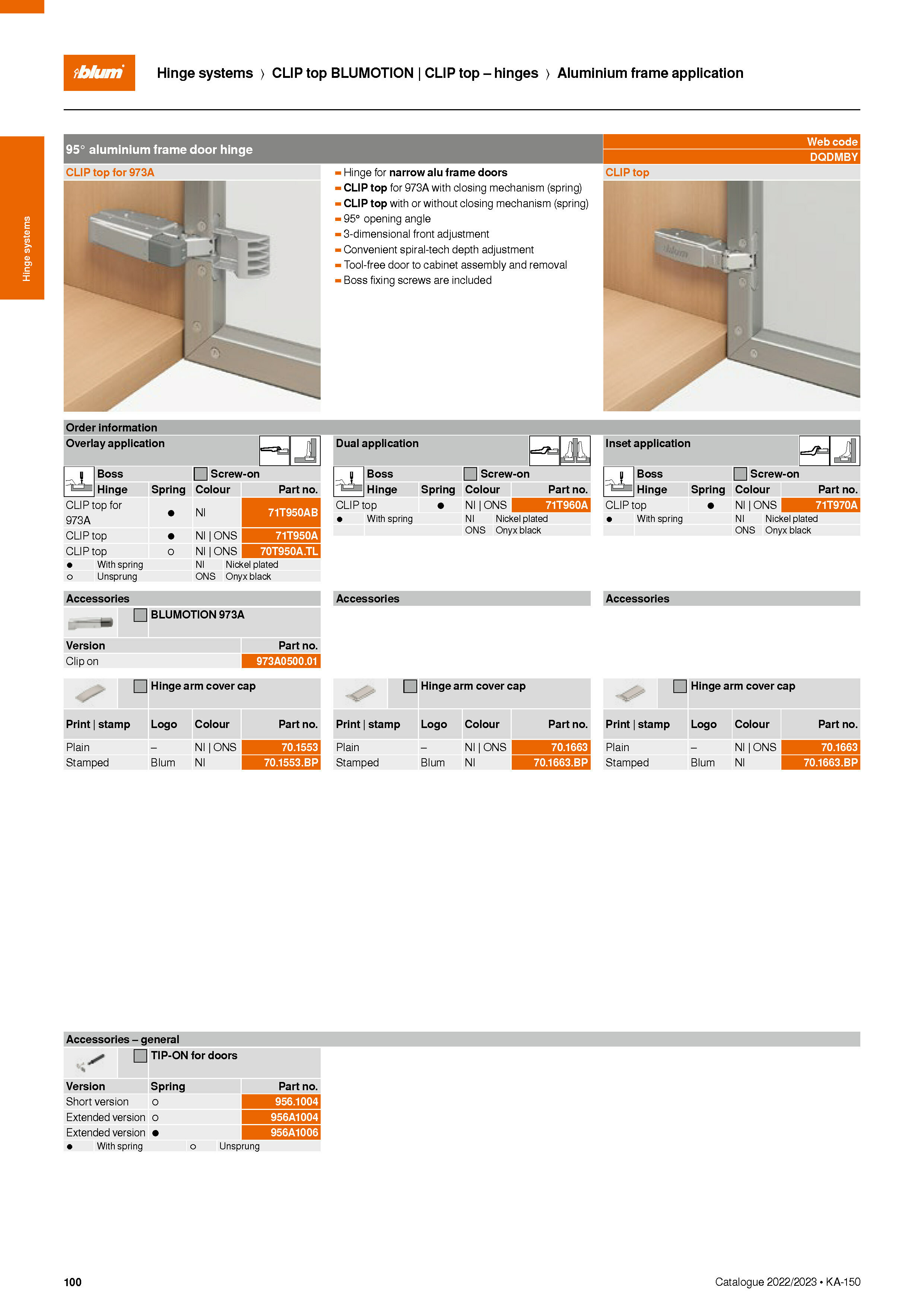 CLIP top BLUMOTION 鋁框鉸鍊 (適用於窄鋁框門)
