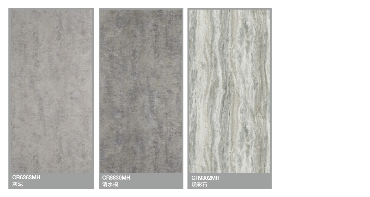 其高壓層壓裝飾紙的調色板具有豐富的多樣性,可打造時尚又健康的空間,並具有抗菌特性,可防止異味和污染。由白色、淺灰色、米黃色、黃棕色、深棕色以至黑色的配色系列,多種芯材色彩選擇,色彩變化,可引發無限想像,適用於各式水平及垂直表面。