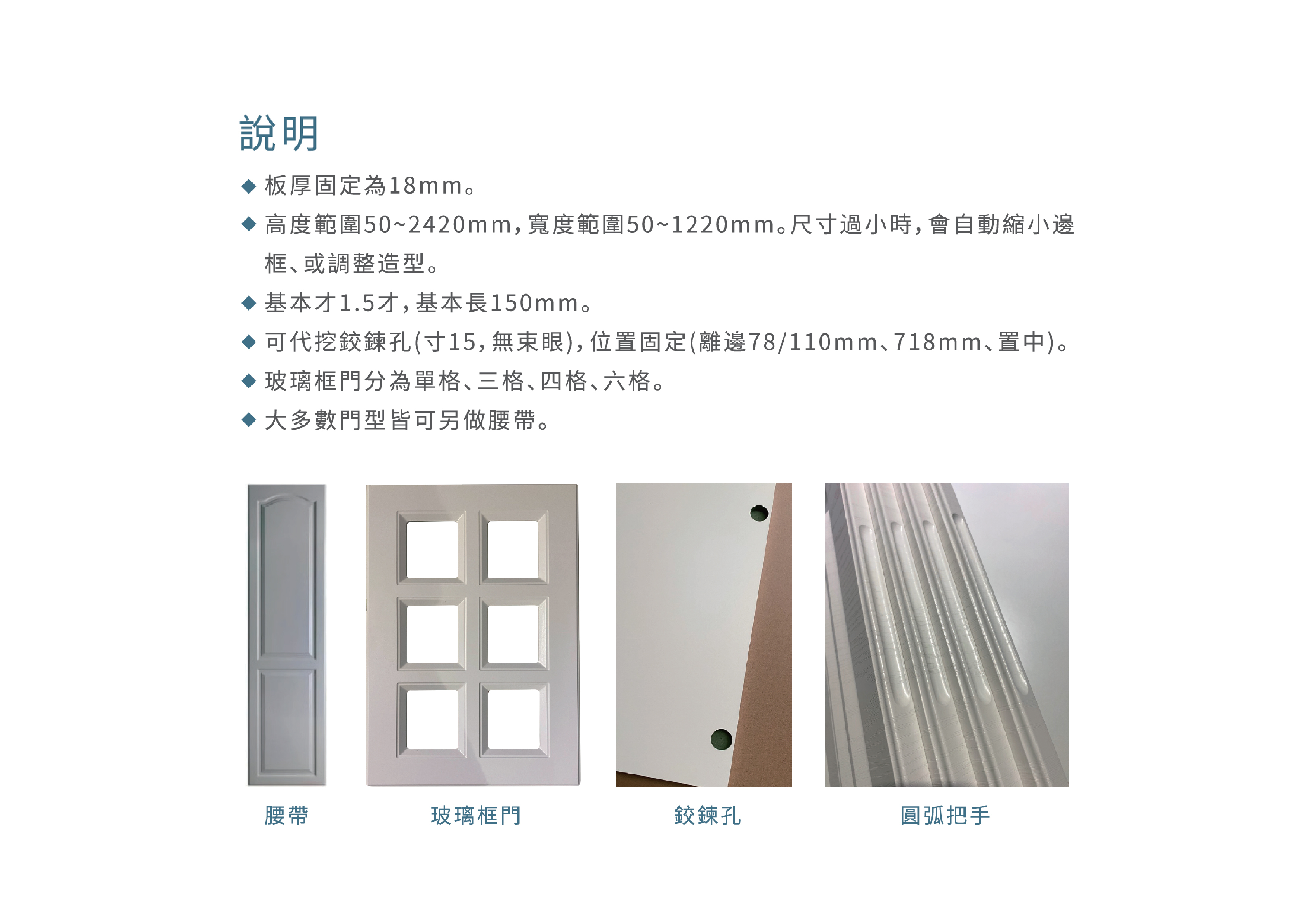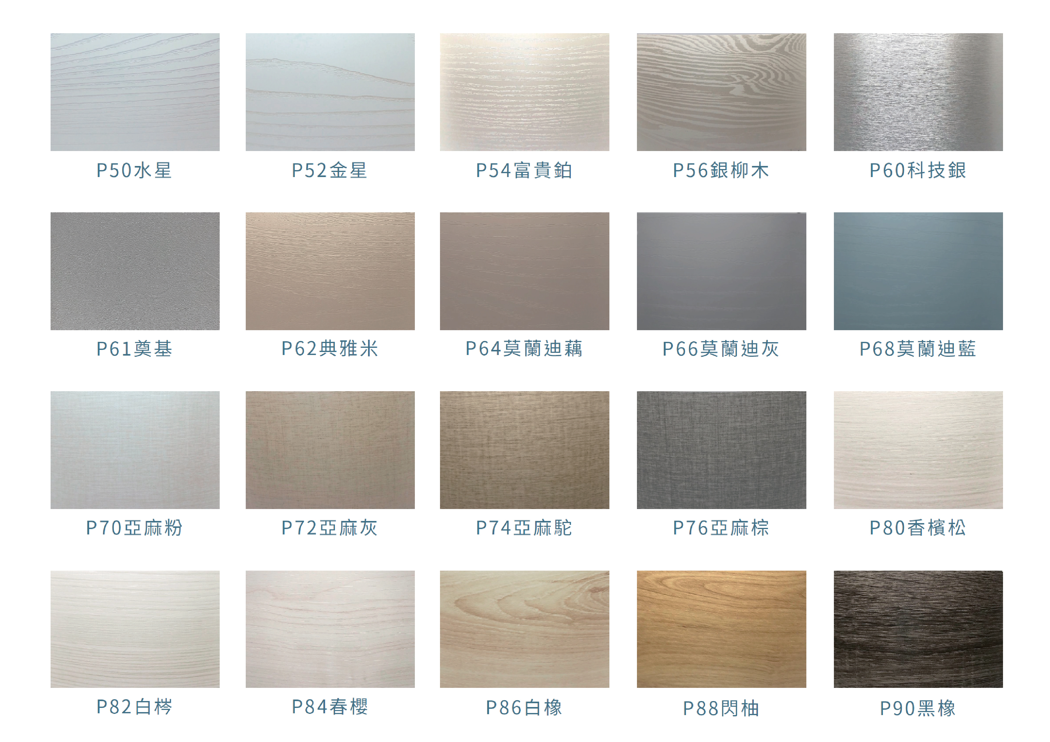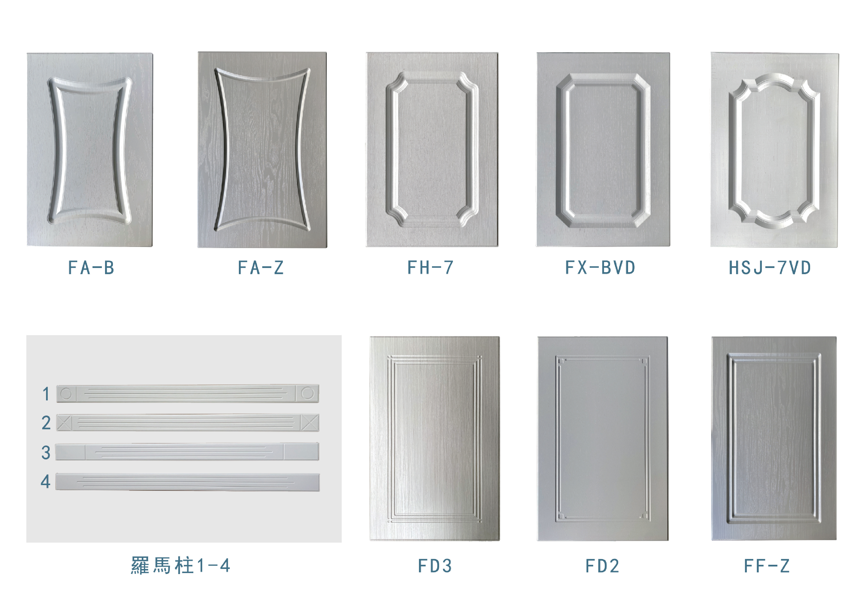 近40種門型、豐富的板色,千餘種造型變化。全系列產品之基材,皆使用E1等級之HDF抗潮芯板,添加防潮成分。硬度高、質地細、抗潮性大幅提升。表面PVC皮板,多為德國及韓國之一線品牌,品質優良。