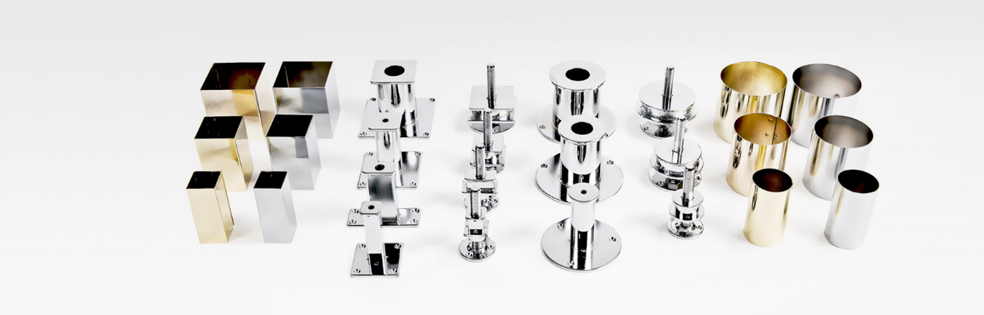 KAWAJUN 調整腳系列商品均為鍍鉻色,可搭配使用隱藏套,可讓調整腳不外露。