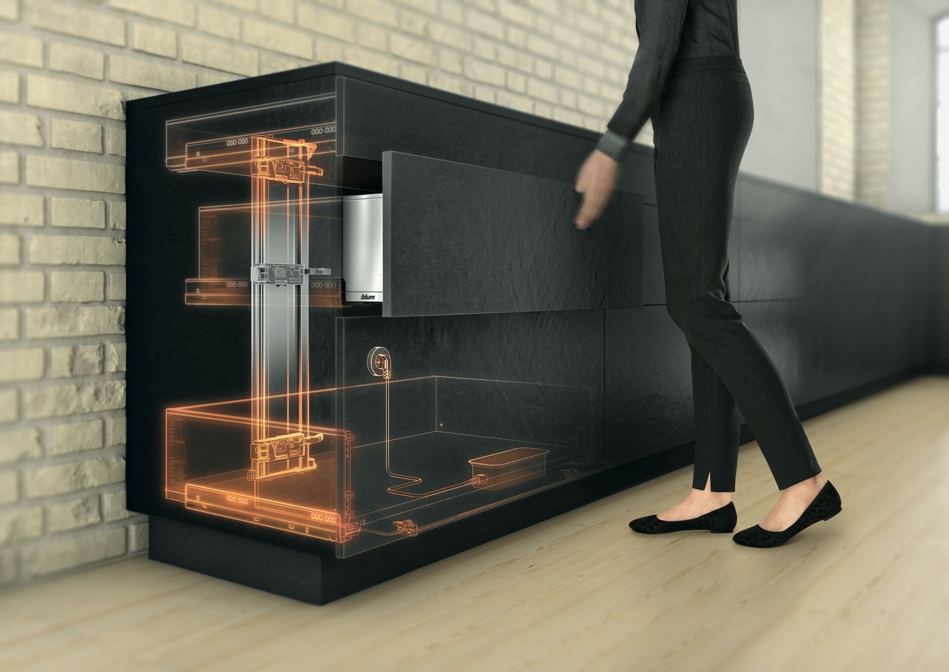 全靠 BLUMOTION 緩衝,各種傢具都能省力地輕柔關上。