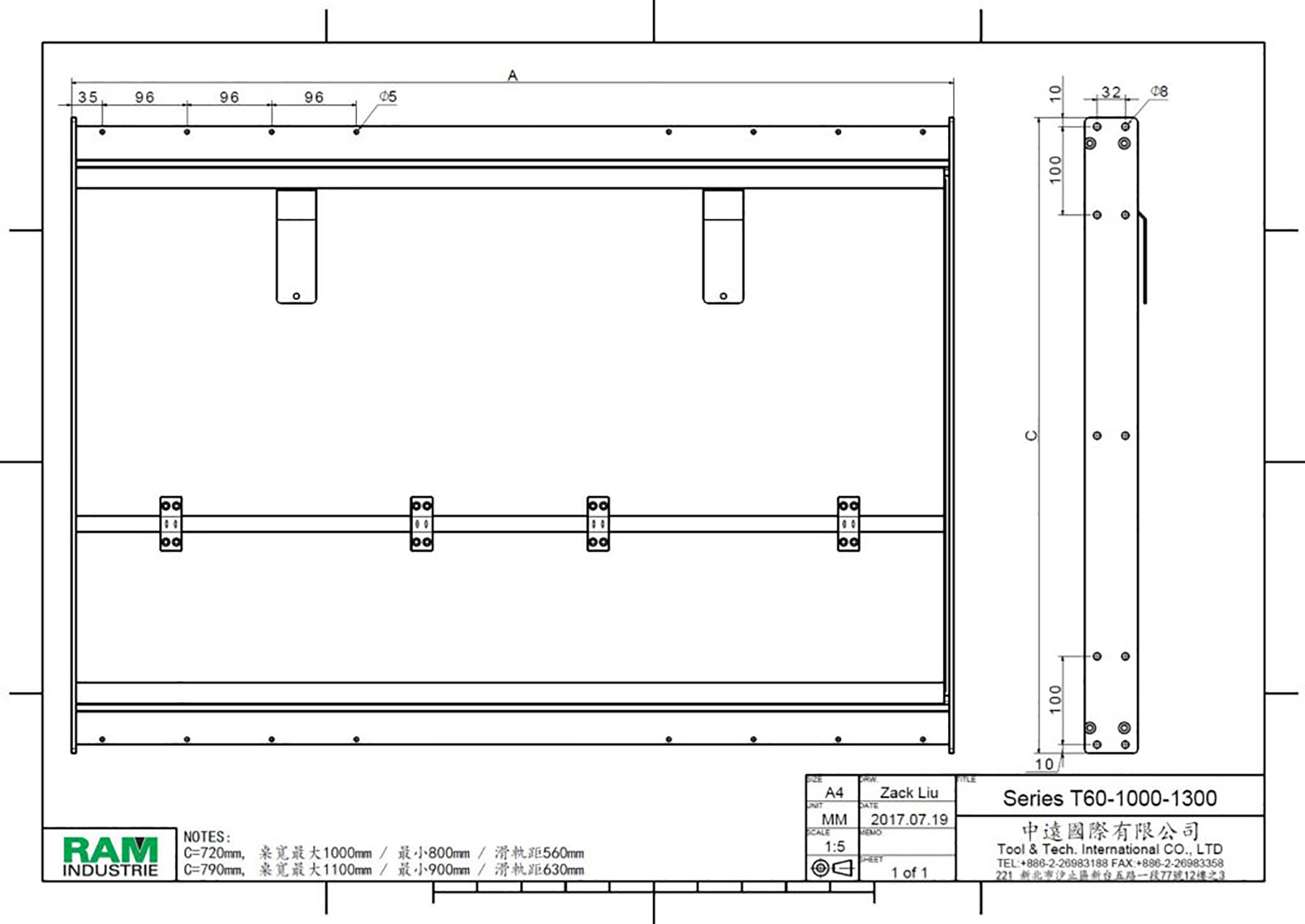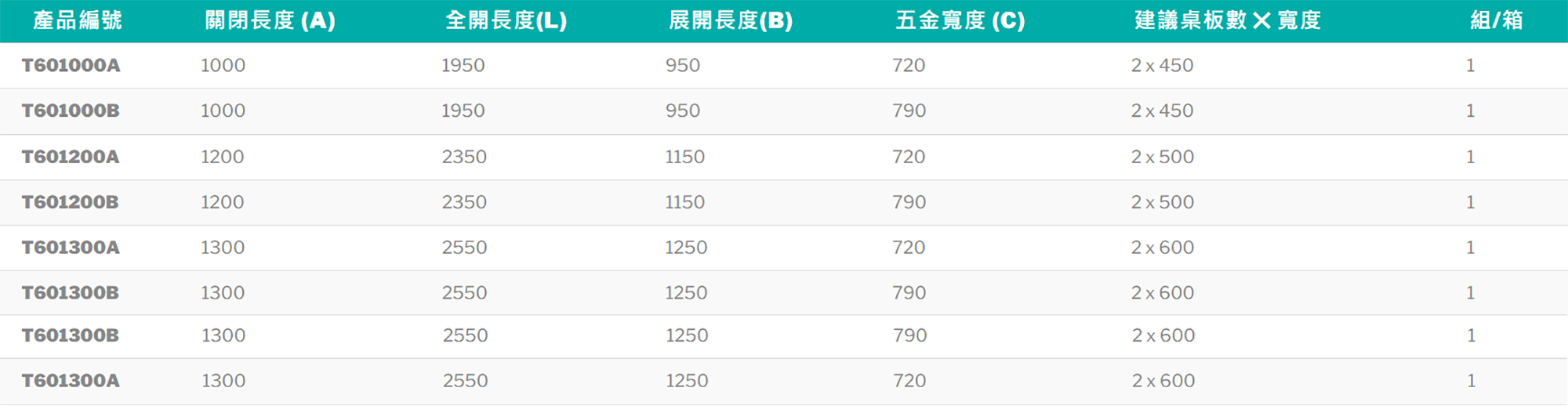 1000mm, 1300mm 雙尺寸,依據桌寬選擇對應產品,餐桌滑軌系列皆全展型6060鋁合金!