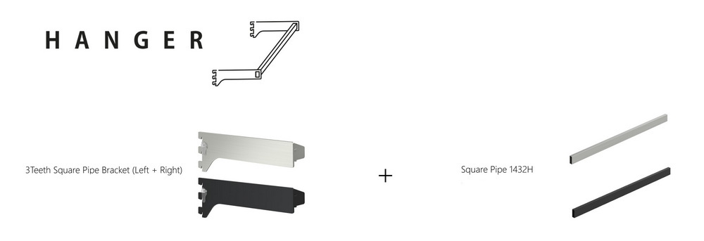 只要將掛鉤尾端的ㄇ型凹處掛於河淳產品14*32方形橫桿上即可。