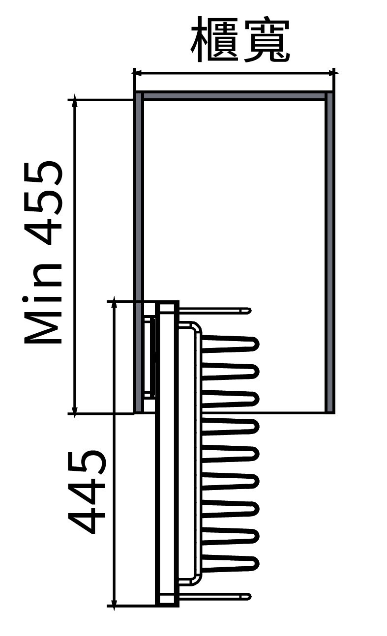 ● 產品+滑軌:寬170 x 深445 x 高85 (mm)