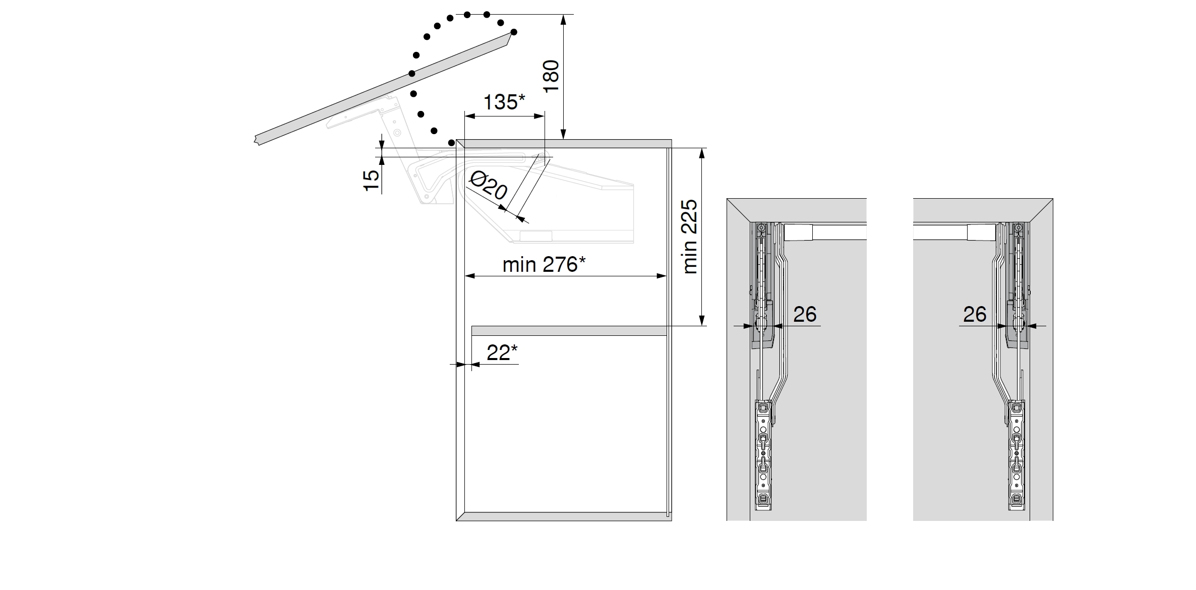 下方圖片可見 應用於四邊框的櫃體 也可以用在上方有線板的櫃體 ( 請詳見設計說明書 )往後方開啟不影響線板安裝空間 ▼