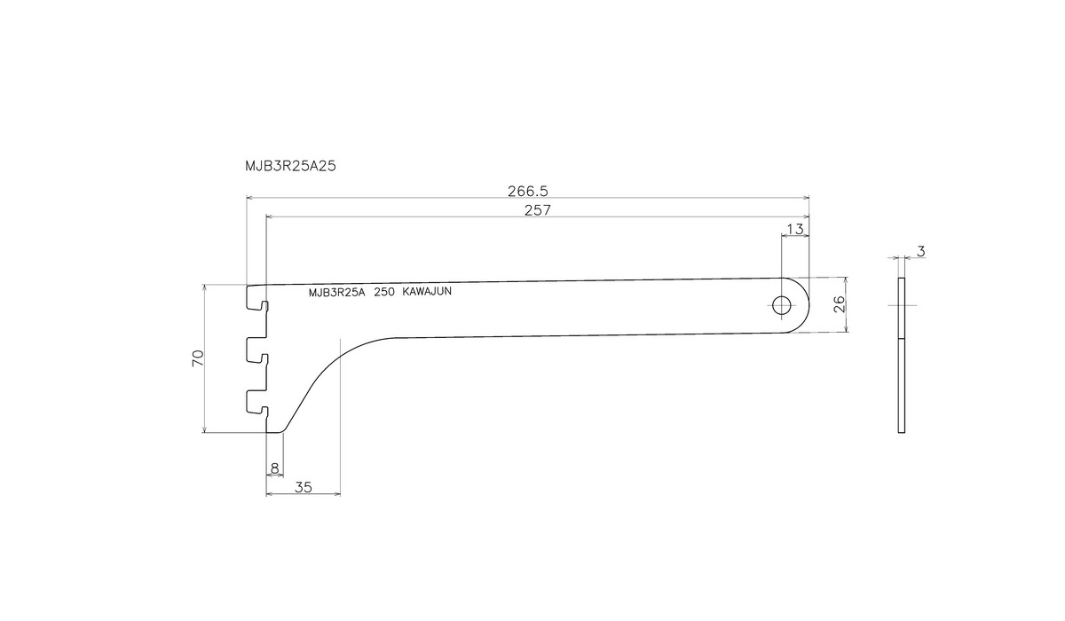 KAWAJUN Bracket 架手-圓管架手-3齒(φ25右)
